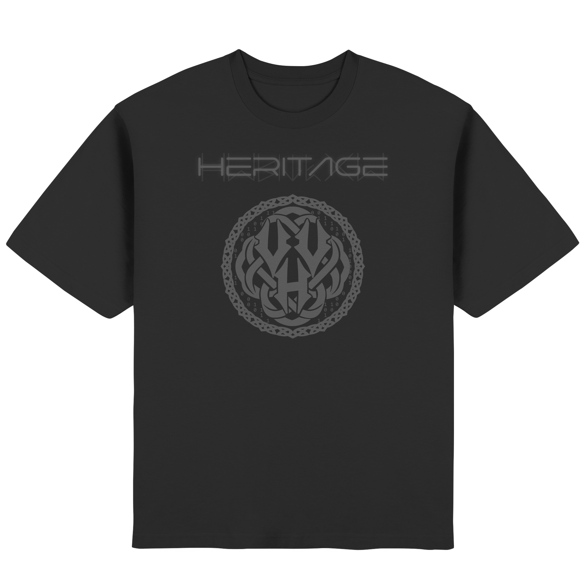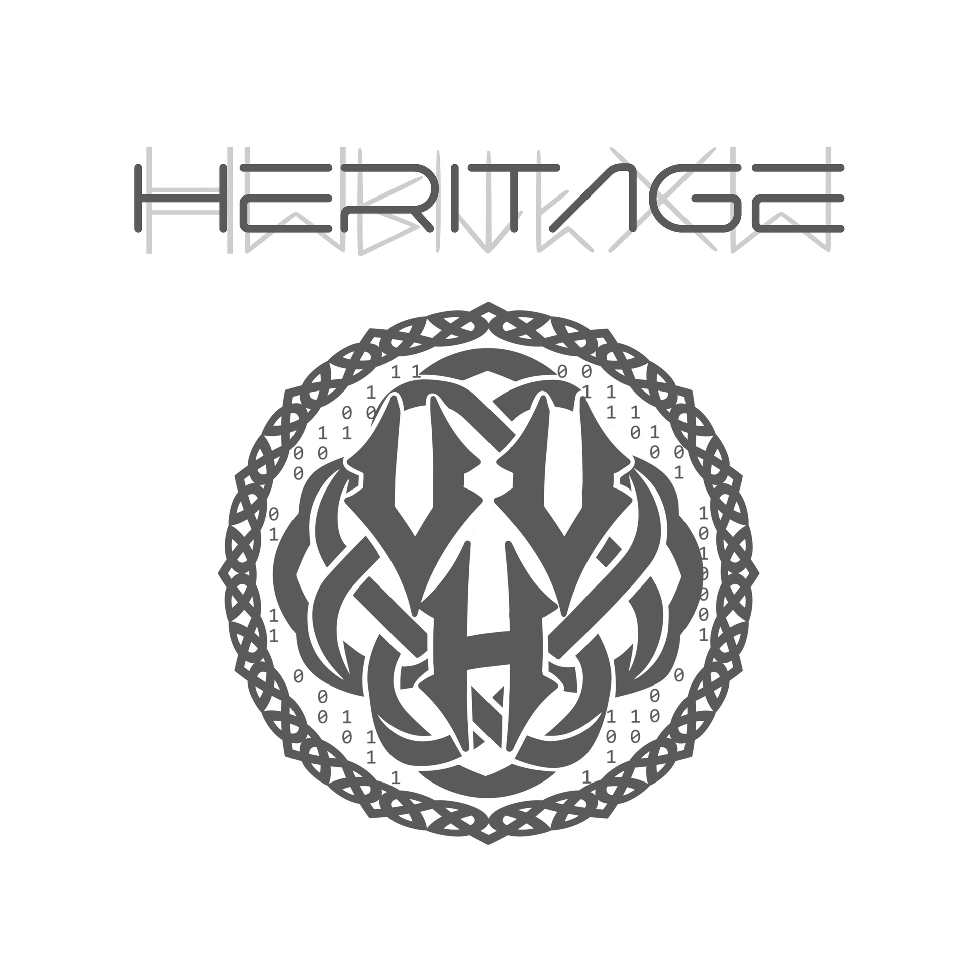 - Rundes Emblem mit VVH-Insignie, Knotenmuster & subtilen Code-Elementen, ergänzt durch den reduzierten, prägnanten „HERITAGE“-Schriftzug